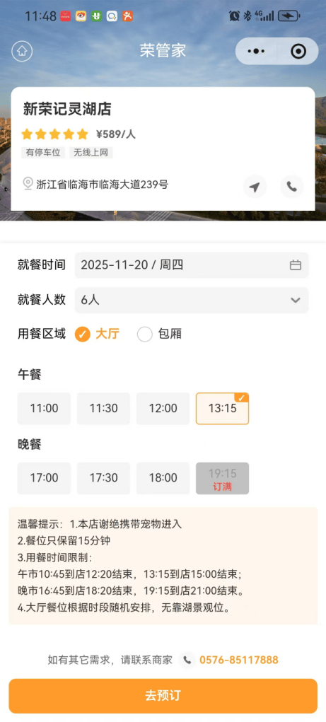 為進(jìn)一步升級(jí)消費(fèi)體驗(yàn),新榮記采用天財(cái)商龍定制的預(yù)訂平臺(tái)“榮管家”,顧客輸入用餐人數(shù)、場(chǎng)景等信息后,系統(tǒng)可自動(dòng)匹配合適座位,免去反復(fù)致電的繁瑣。該平臺(tái)已超越基礎(chǔ)訂座功能,成為客流增長(zhǎng)、運(yùn)營(yíng)提效、數(shù)據(jù)決策與品牌升級(jí)的核心工具,助力新榮記實(shí)現(xiàn)營(yíng)收與效率雙提升。