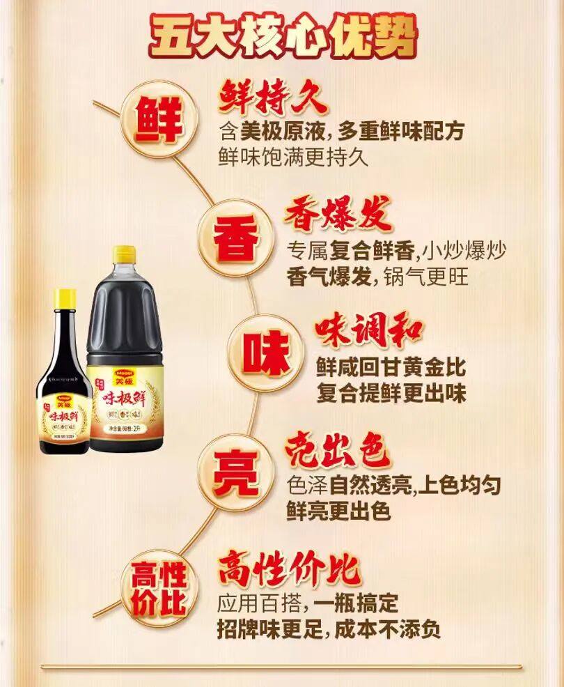 據(jù)了解,這款新品含有美極原液,具備極具辨識度的美極鮮香,且鮮味飽滿持久,凸顯食材本味的同時,還能做到提鮮不搶鮮。