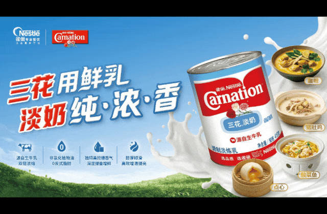 如果說美極鮮味汁是廚師手里的“去腥提鮮利器”,那么雀巢三花淡奶則為菜品的質(zhì)地改良提供了新思路。它詮釋了一款調(diào)味品如何改善菜品的質(zhì)地,為菜品增色增香。