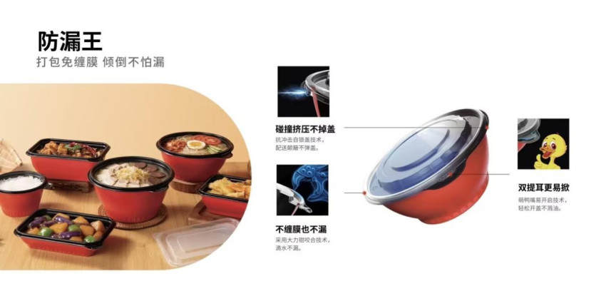 從外賣出餐的扣蓋瞬間,到配送過程中的持續(xù)顛簸,再到消費(fèi)者開啟與使用的實(shí)際體驗(yàn),新天力通過精準(zhǔn)捕捉每個(gè)環(huán)節(jié)的核心痛點(diǎn),推出防漏王這一全新爆品。